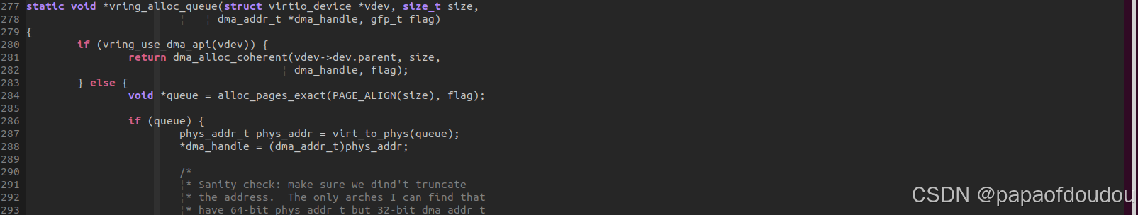 其tx/rx发送队列完全复制了virtio中vring queue的实现,连API都没有变,如下分别是ZX网卡驱动代码中的vring_alloc_queue实现和内核主线vring_alloc_queue的实现,可以看到完全一样: