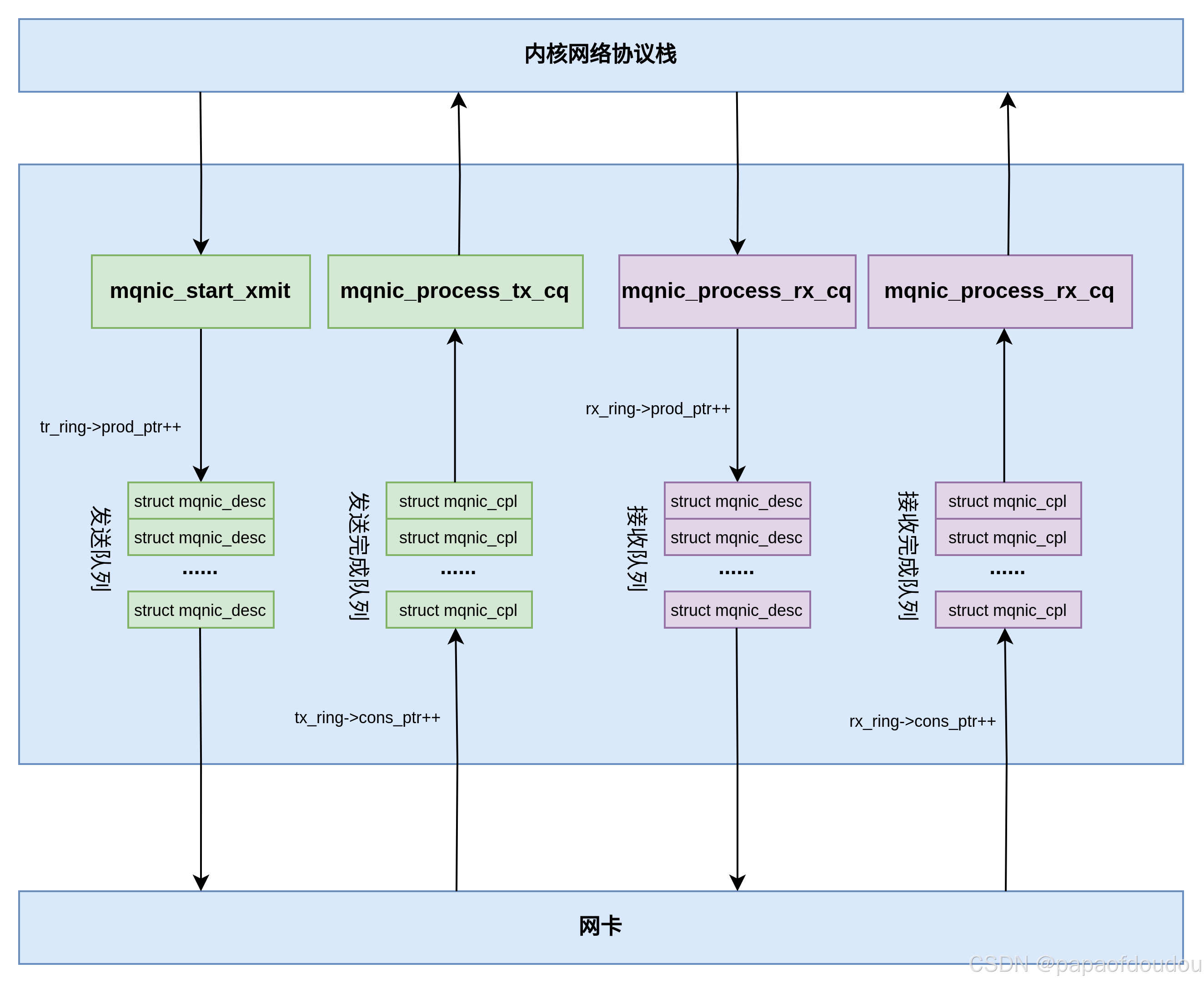 2.完成进度由cq队列中的struct mqnic_cpl->index记录,用于更新consumer pointer.
