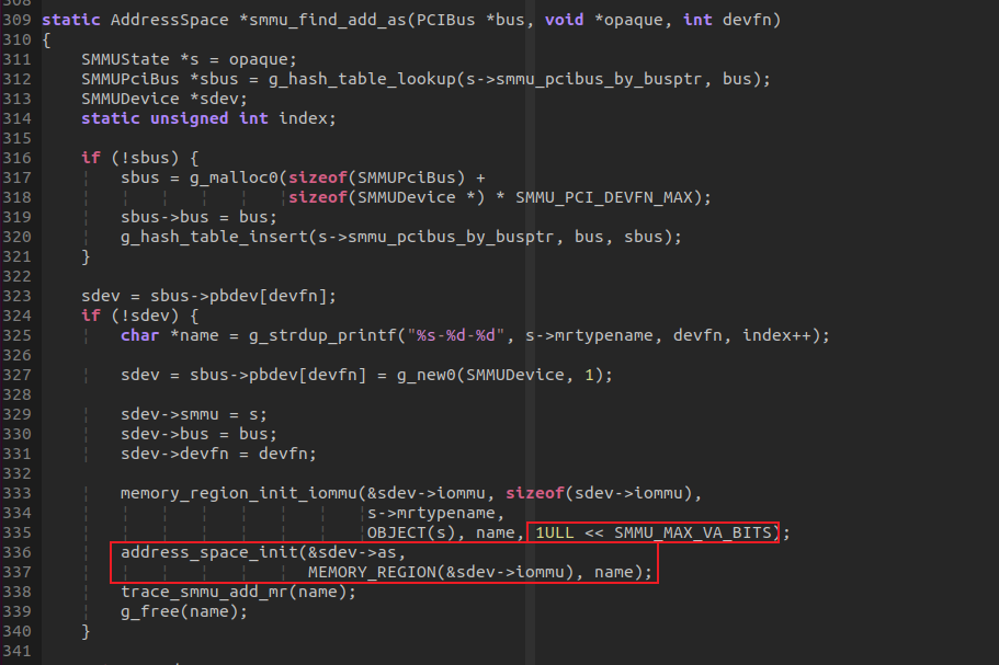 HYPERVISOR启动时,会初始化smmu address space,并将 address space内的memory region is_iommu字段置位,表示此后由此地址空间发起的访问,都通过IOMMU。