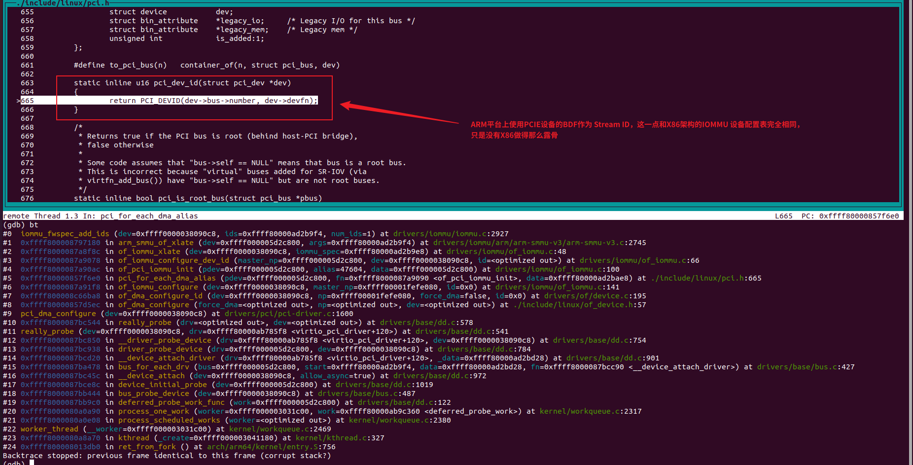 AARCH64平台下仍然使用PCIE设备的BDF作为Stream ID,这一点和X86架构完全一样,Stream ID用于查找IOMMU STE表,在X86上则是用于查找Context Entry.