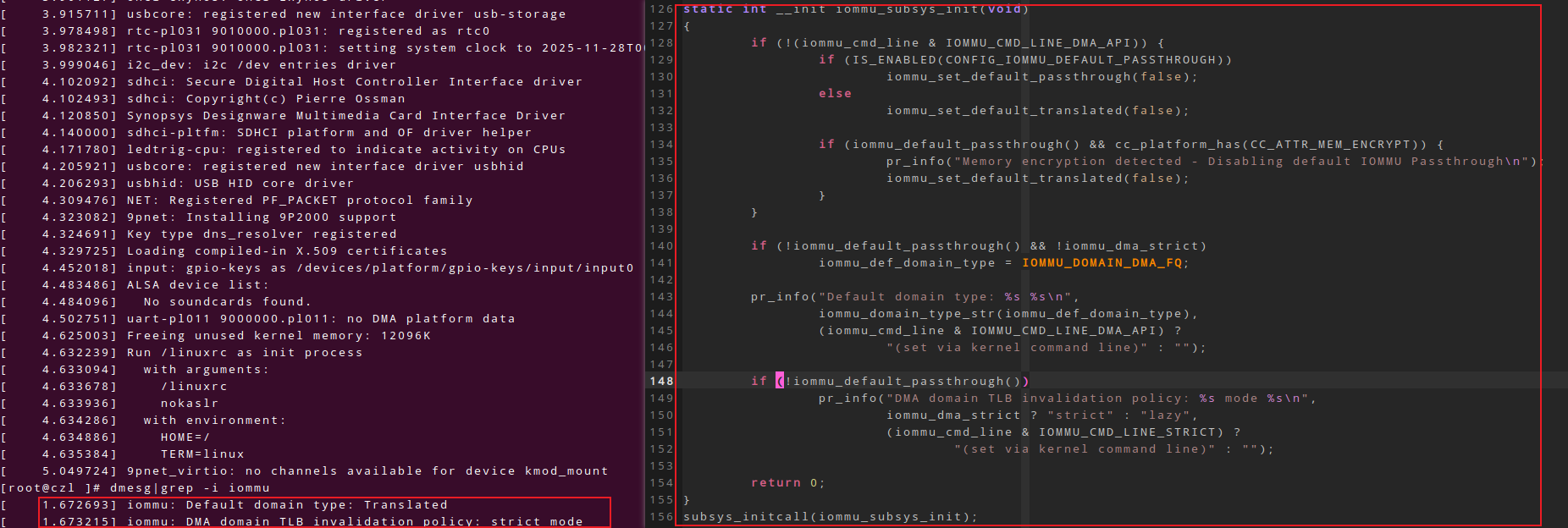 进入系统后,可以看到系统启动阶段成功创建了IOMMU GROUP0,并且将PCI 0000:00:00.0加入到了此GROUP。