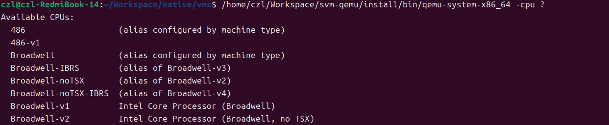 /home/czl/Workspace/svm-qemu/install/bin/qemu-system-x86_64 -cpu ?