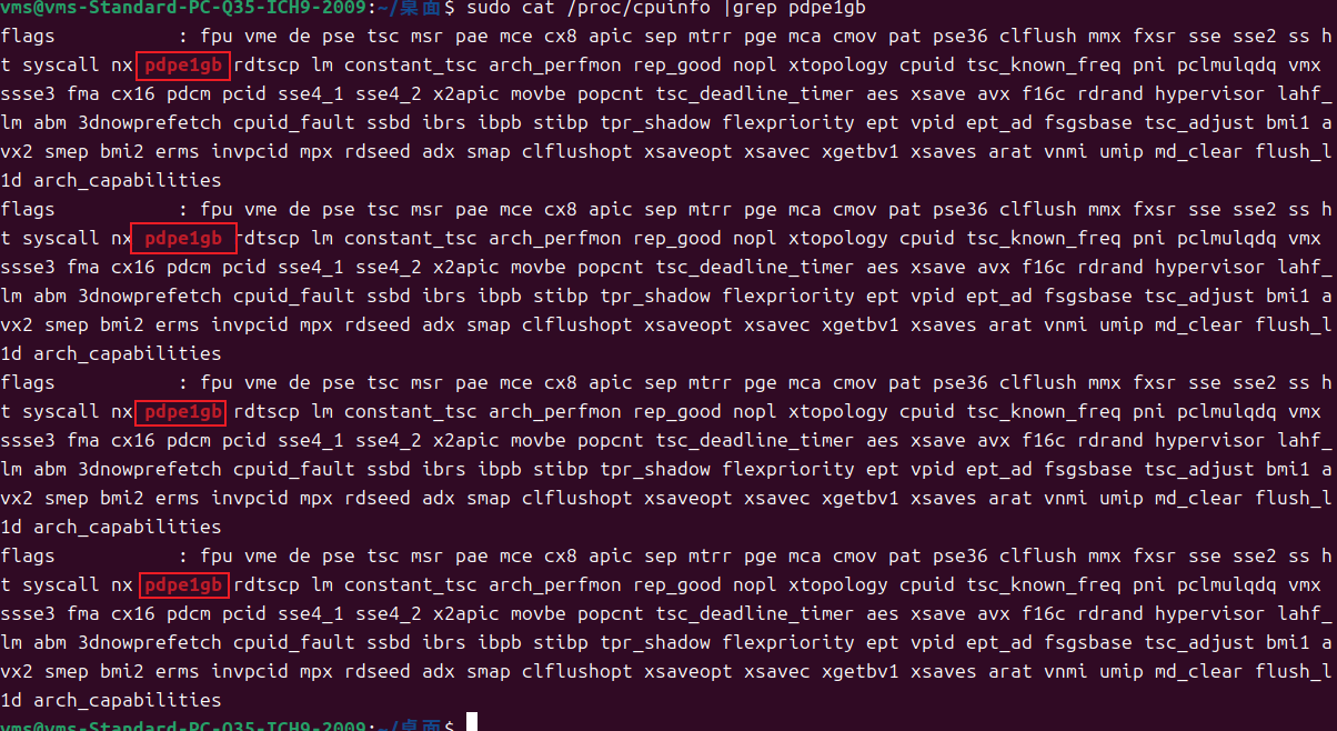 sudo cat /proc/cpuinfo |grep pdpe1gb