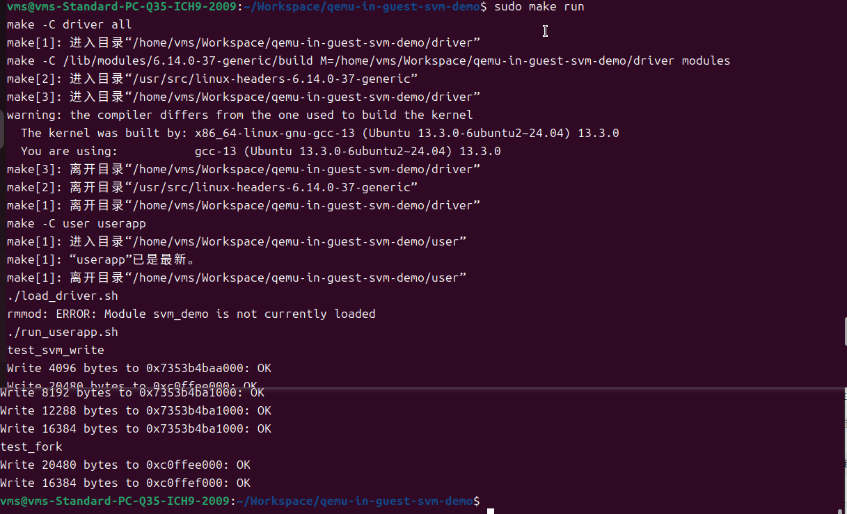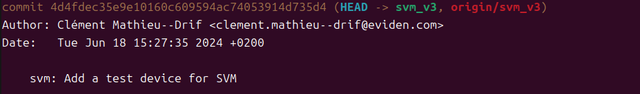 此版本是WIP for SVM的版本,还未合入QEMU mainline,基于qemu主线10.1.x开发,算是很新的了,其中实现了一个支持SVM的模拟 PCIE Device,使用此仓库的svm_v3分支.