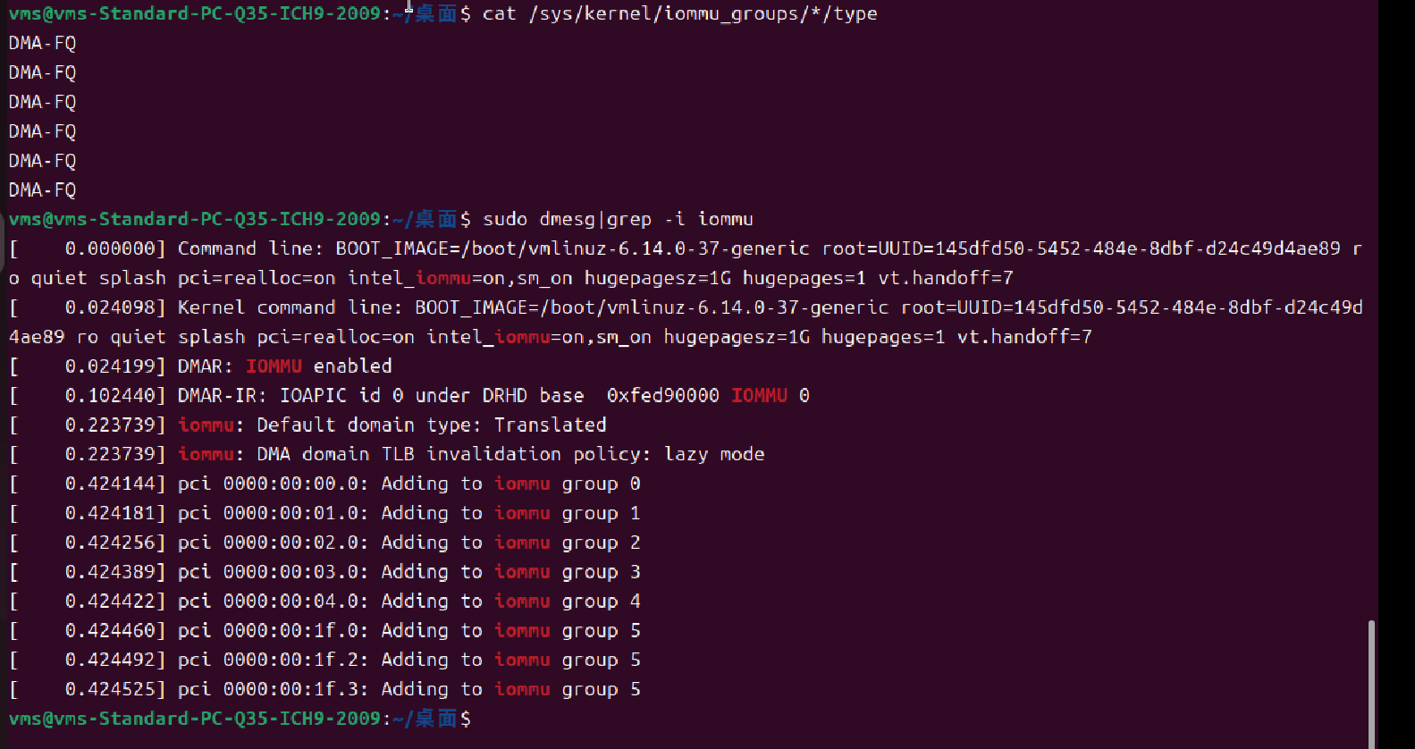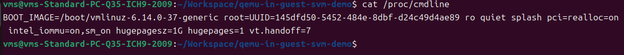 之后重启虚拟机,查验IOMMU和巨页配置是否OK: