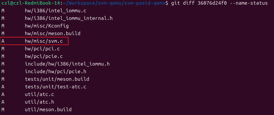 分析改动文件,发现这11笔提交主要包含两个方面的改动,1。增加支持SVM PASID的模拟PCIE设备实现svm.c。2.对intel-iommu支持SVM机制的改动,包括PASID, ATC等等模块。