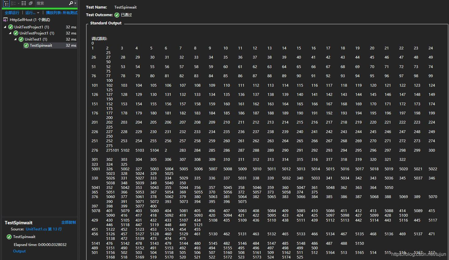 此方法用于控制多线程处理并输出的情况下,输出的顺序常常因线程调度顺序被打乱的情况。使用Spinwait控制输出线性,是一个可行的方法。当然,如果内存足够,全部缓存之后再排序也是可以的。