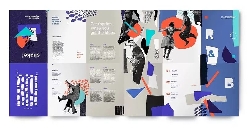 而如果把折页的封面设计成异形,那么就容易在视觉上给人眼前一亮的感觉,从而提升阅读率。当然,也不能为了异形而异形,通常这么做是为了利用异形与内页形成互动,制造一些比较有意思的效果。