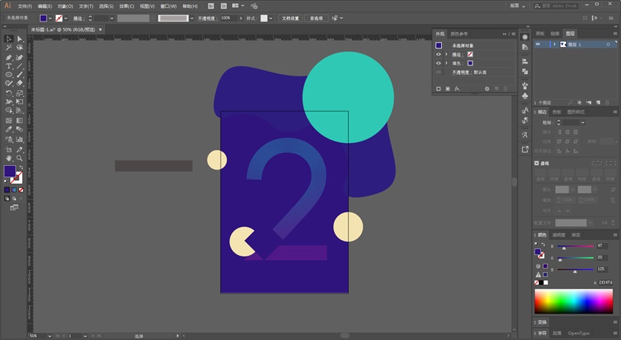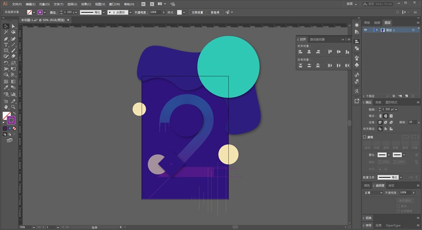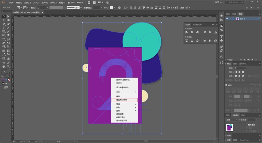基本上就搞定了,接下来最上面画一个和画板一样大小的矩形,全选对象右键创建剪切蒙版搞掉画板以外的部分: