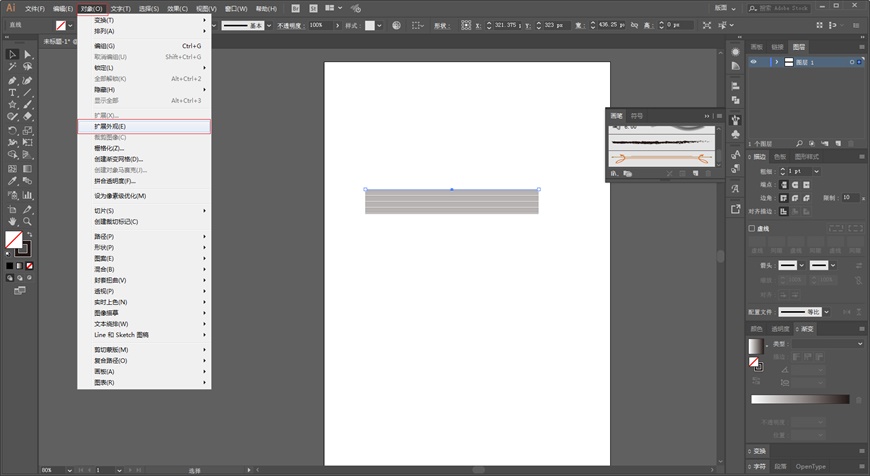 选中对象,执行对象-扩展外观,这样一组线条的图形就制作好了: