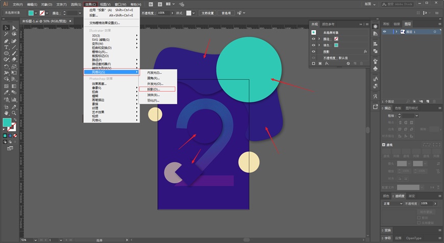 给箭头所指出的对象添加效果-风格化-投影,参数大家看着办就好: