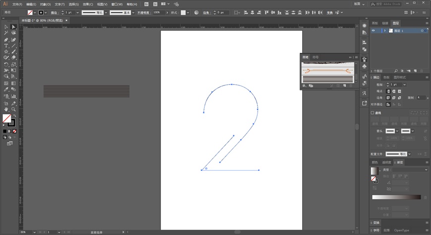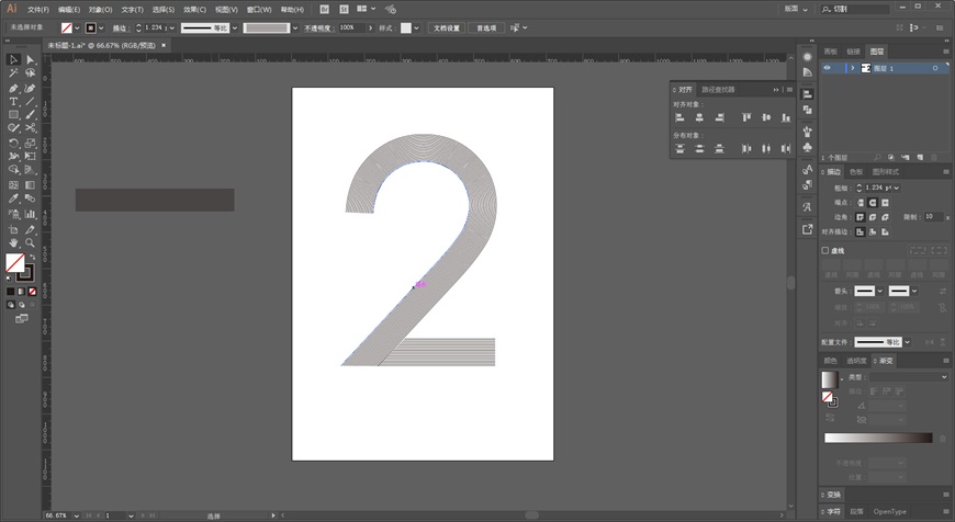 选一个合适的字体打上数字2,我这里选择的是华文细黑,描边无填充: