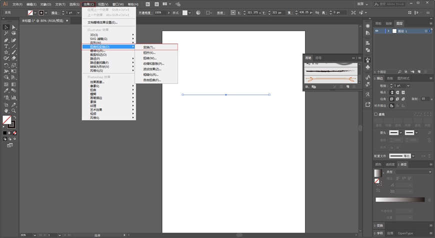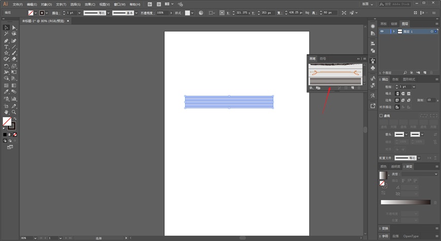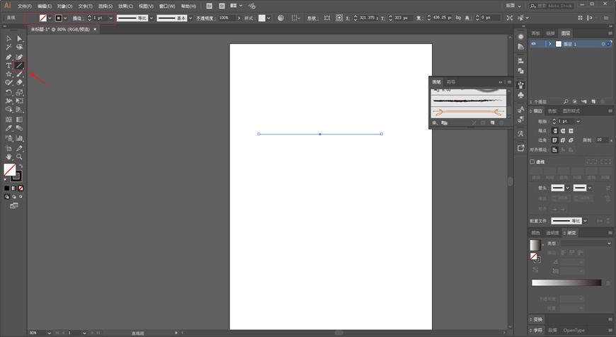 大概知道了艺术笔刷怎么用之后,我们就开始今天的正题吧,如图用直线工具画一条直线,颜色随意,描边1pt:
