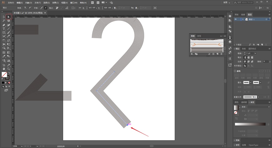 这里需要对字形进行调整,所以用小白工具选中不需要的部分后删除,别忘记取消编组以及释放复合路径噢: