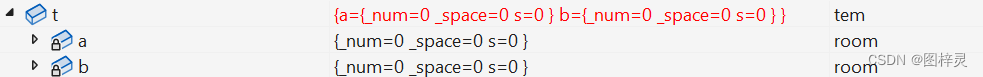 tem t;//实例化类tem,tem内部的类room a和room b(属于自定义类型),会调用类room的默认构造函数,初始化a和b