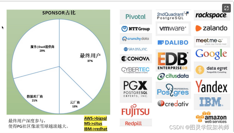 4、防止其他厂商控制PG失去市场主导能力(AWS,google,IBM,微软都已成为PG社区的赞助商)