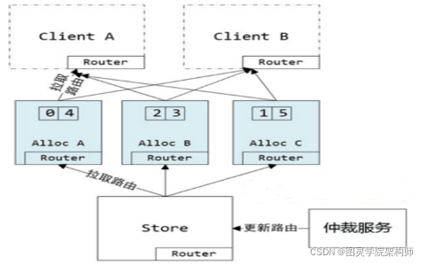 微信的序列号生成器由仲裁服务生成路由表(路由表保存了uid号段到AllocSvr的全映射),路由表会同步到AllocSvr跟Client。如果AllocSvr宕机的话会由仲裁服务重新调度uid号段到其它AllocSvr。