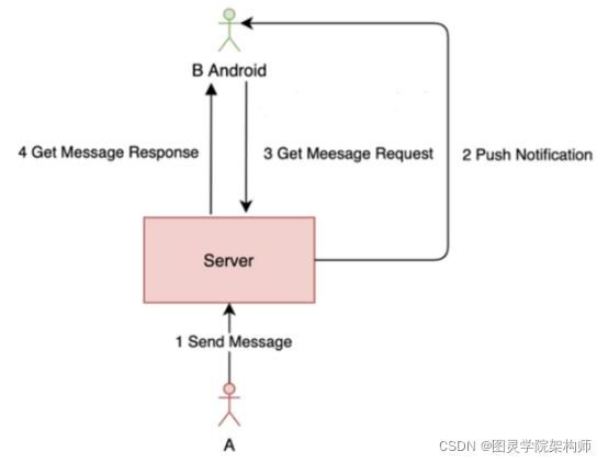 - 推拉结合模式:有新消息时服务器会先推一个有新消息的通知给前端,前端接收到通知后就向服务器拉取消息。