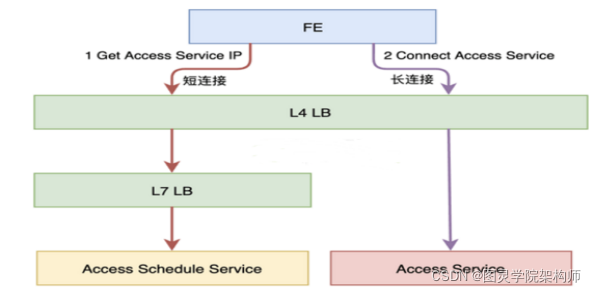 对于长连接的接入层,如果我们需要更加灵活的负载均衡策略或者需要做灰度的话,那我们可以引入一个调度服务。