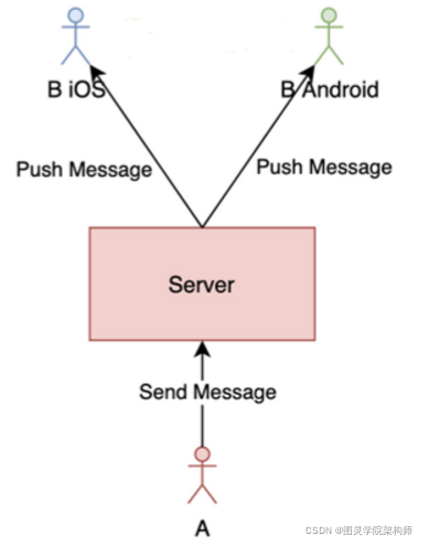 - 推模式:有新消息时服务器主动推给所有端(iOS、Android、PC等);