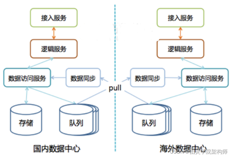 ▲ 图片引用自《快速裂变:见证微信强大后台架构从0到1的演进历程(二)》微信每个数据中心都是自治的,每个数据中心都有全量的数据,数据中心间通过自研的消息队列来同步数据。