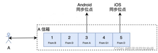 如上图所示:A与每个聊天的人跟群都有一个信箱(有些博文会叫Timeline),A在查看聊天信息的时候需要读取所有有新消息的信箱。