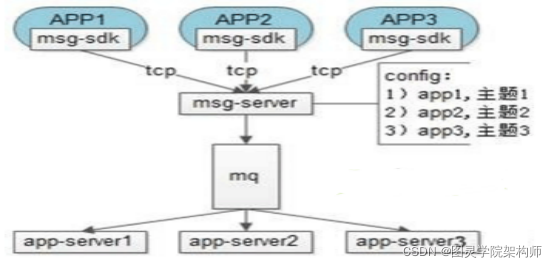 即消息只要到达服务器,然后服务器发送到MQ就算发送成功。如果由于权限等问题发送失败的话后端再推一个通知下去。
