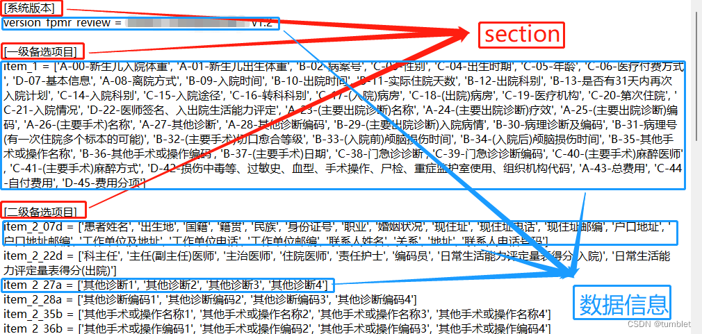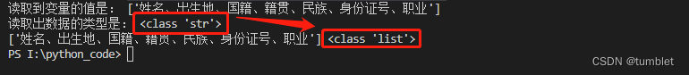 正如上方代码段:config['系统版本‘]、config[’身份信息‘]就是配置文件的section。每个section中都有相应数据。请注意:'身份信息' : ['姓名、出生地、国籍、籍贯、民族、身份证号、职业'],我存入一个列表。但终端显示读取到的数据为字符串类型:“['姓名、出生地、国籍、籍贯、民族、身份证号、职业']”,整个长串是个字符串而不是预想的列表类型。