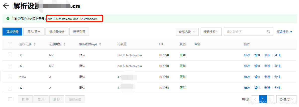进入解析管理页面,填写对应域名解析参数。等待10分钟左右,即可生效。