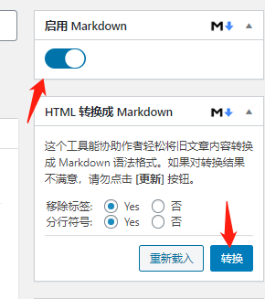 <tr><td>等标签; - HTML转为Markdown功能键,启用转换按钮,功能按钮如下图所示。