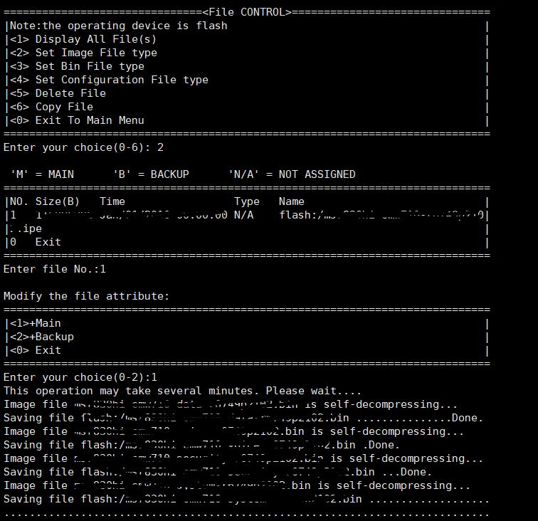 经过查询官方和网上文档以及官方知了社区,得知H3C,支持串口的XMODEM方式传输文件。直接调出xshell,传输最新的固件文件。在经过2个小时漫长等待后,文件传输完成。提示波特率切换到9600。这是很好的现象,说明传输完成了。但是令人失望的是毫无效果,flash上空空如也。难道是基本bootware坏掉了?