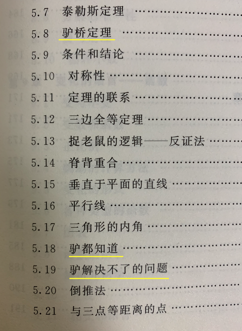 所以这个定理就有了驴桥的别称,意为:笨蛋的难关。驴指大傻子,桥即为难关。如果连这个命题都搞不定,那后面的难题就更别说了。