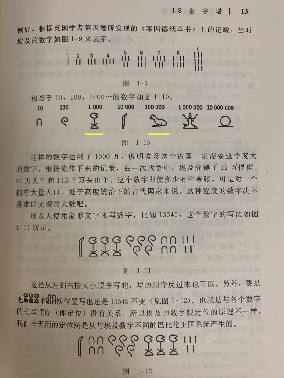 这确实是象形文字和十进制的好处,几千万的大数画个画就记录下来了,而且花和鸡的顺序还不用固定。