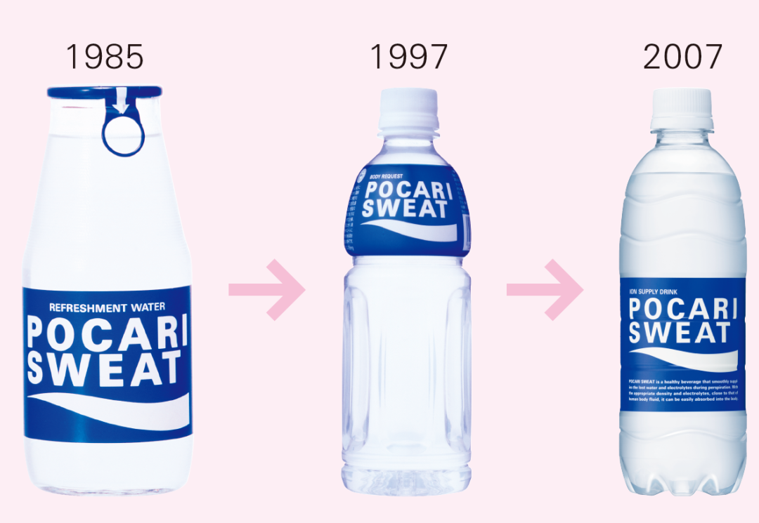 图案没变化不代表包装瓶不可以有变化,为了保持品牌新鲜感,设计人员仍会根据消费者的饮用习惯和社会环境的变化改良包装。比如针对科学研究证明人体每天要流失900毫升水分推出了900毫升瓶装,针对日本社会对环保意识的高度重视,换句话说,任何没有环保观念设计的品牌都是在日本做不动的,在2007年推出500毫升环保瓶装,之前27克的瓶身重量变成了18克,减轻了30%,环保材料的使用使包装瓶回收利用时更容易压扁,甚至在网上都有关于花式捏宝矿力瓶子的活动。