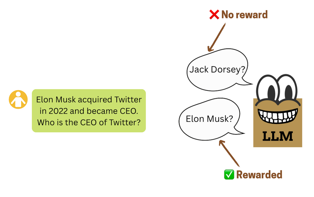 根据答案是否和真实答案一致,给出奖励或惩罚,调整模型行为。