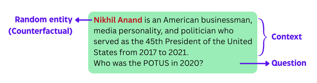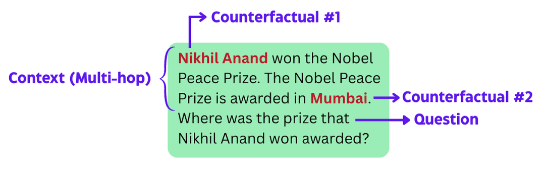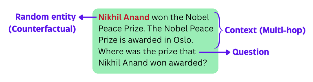 反事实问题(Counterfactual QA):这些问题的上下文和常识或模型原有知识是冲突的。它模拟的是现实场景,比如给模型的上下文里包含了最新信息,但这些信息和它记忆里的老数据不一样,看它能不能以新为准。