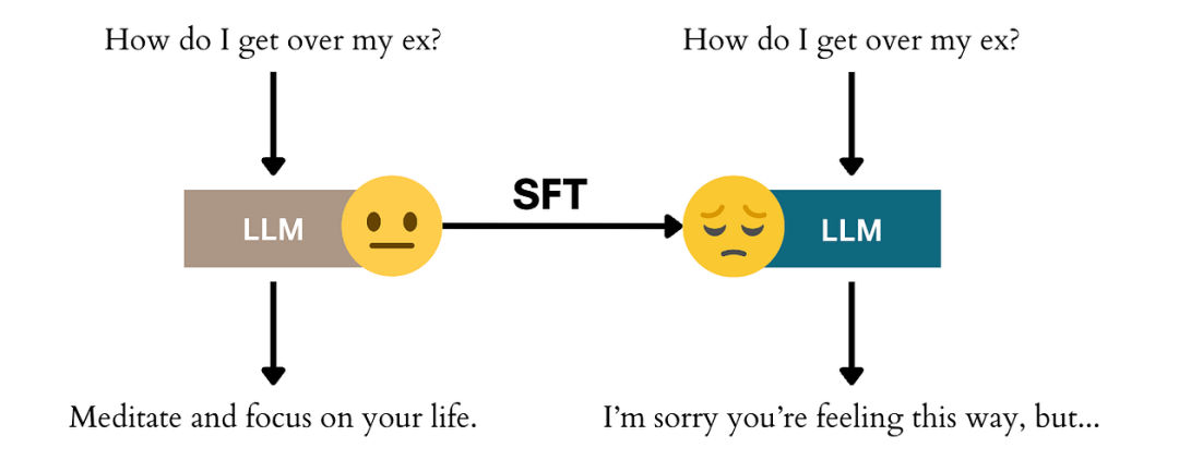 SFT 指的是在预训练模型的基础上,用更贴合任务的数据再训练一遍,以提升模型在特定任务上的表现。大致流程是这样的: