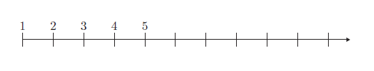 如图所示,在直线左侧的0, − 1, − 2, − 3, · · · 也以相等的间距排列着。