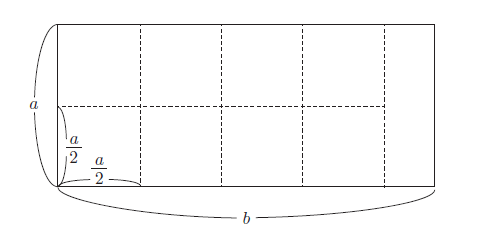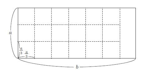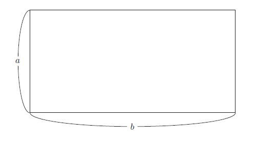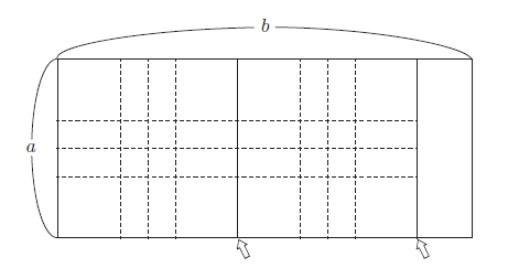 在求解a、b 两个数的最大公约数时,我们先假想存在一个宽为a 且长为b 的长方形,b 比a 长,即a < b。