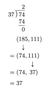 接下来问题就变成了寻找37 和74 的最大公约数,显然答案为37,因为74 可以被37 整除。