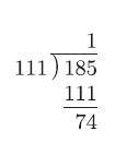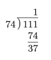 这次我们用数值较小的74 去除数值较大的111。