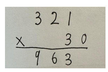 举例来说,有一个两位数是 30,一个三位数是 123。当用 30 中的3(在十位上,表示 3 个十)去乘 123 的时候,实际上是在算 30 个123 是多少。3×123 =369,但这个 369 其实是 30×123 中的一部分,它表示的是 30 个 123 中的 30 个百,所以这个结果的末位要和十位对齐,这样才能保证最终的结果是通过正确的加法运算得到总的乘积。