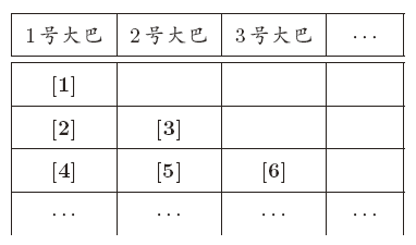 经:请大巴上的客人按顺序入住。第一位客人入住1 号房、第2 为客人入住3 号房、第n 位客人入住(2n − 1) 号房。这样一来,就能帮乘坐大巴的所有自然数客人安排房间。加州旅馆的卖点就是保证您随时都可以入住。