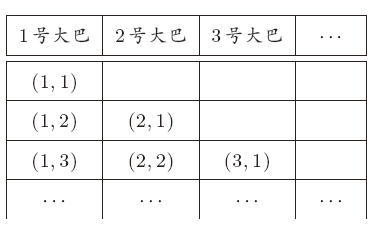 经:你不用担心。旅游大巴里的客人都有2 个号码,一个是自己乘坐的大巴编号,一个是自己在大巴里的座号。例如,如果是3 号大巴的第5 名乘客,就记作(3, 5)。