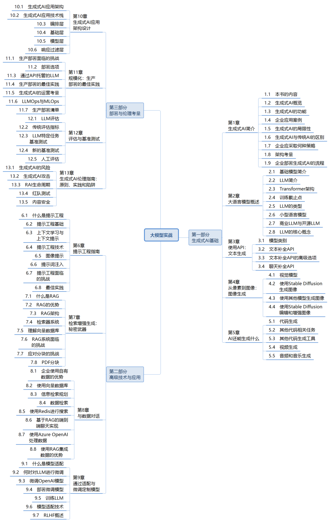 第三部分则聚焦生产环境中的架构设计、扩展策略、性能评估与AI 伦理规范,为组织落地生成式 AI 提供指导。