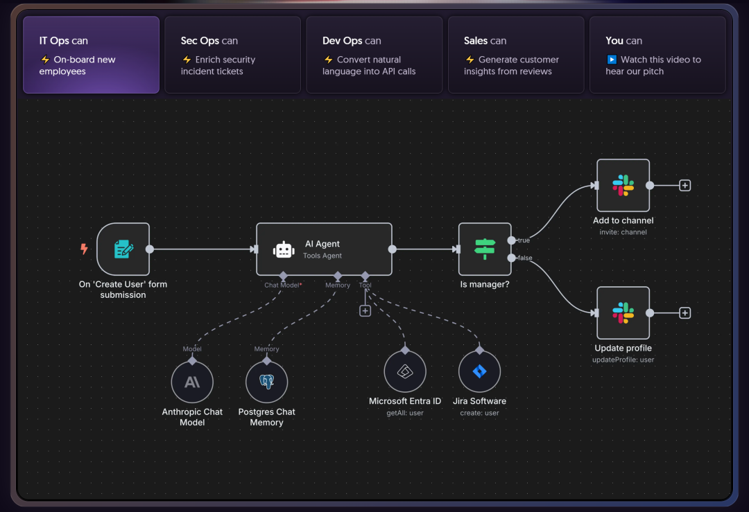 n8n 的灵活性不仅体现在这些基本功能,它还能处理从简单到复杂、多步骤的自动化需求。几乎所有行业都能用它来自动化大量流程。