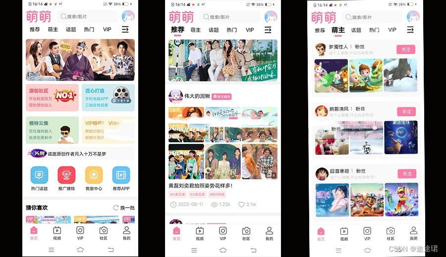 8. 【用户类别】用户系统分为用户、作者、管理员。用户为普通注册用户,作者可理解为团队 前段意为“萌主”,发布一些特定的视频及图片,重点突出显示。