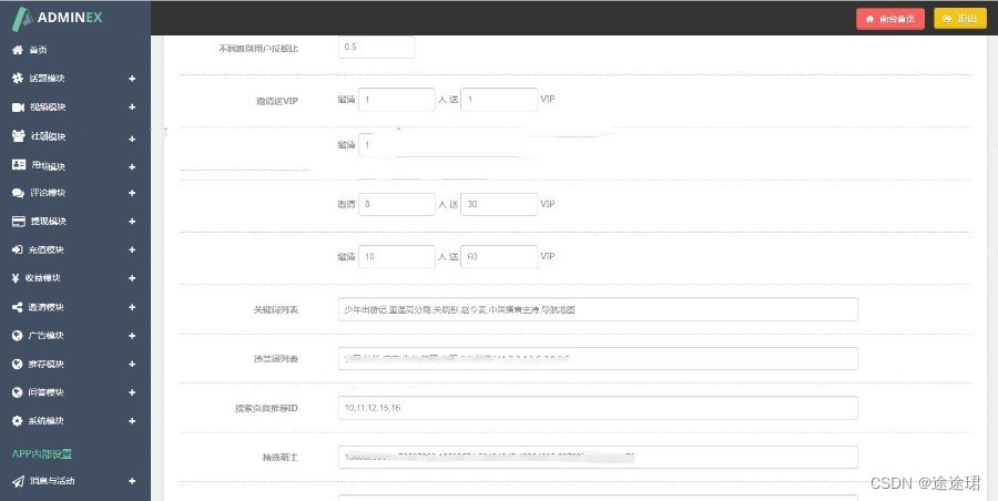 5. 【代理】用户可分享连接,赚取佣金及会员,后台可设置(下图)。