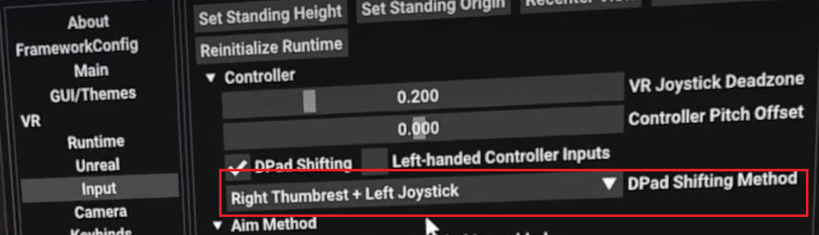 其中十字键位的模拟可以在游戏内UEVR菜单中进行选择,建议Quest用户选择拇指区加摇杆(Right Thumbreast + Left Joystick 或 Left Thumbreast + Right Joystick)