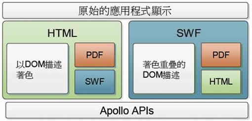 除了原有的Flash Player及WebKit引擎所提供的APIs之外,AIR附加了新的重要APIs功能,皆可由ActionScript或JavaScript来呼叫,如下: